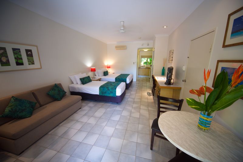 The Queen Studio is a fantastic choice for anyone who wants a comfy and cosy place to stay at an affordable price. There's plenty of room for you and your companion or if you're travelling solo, this room is the perfect size to relax before seeing the beautiful Port Douglas surroundings.